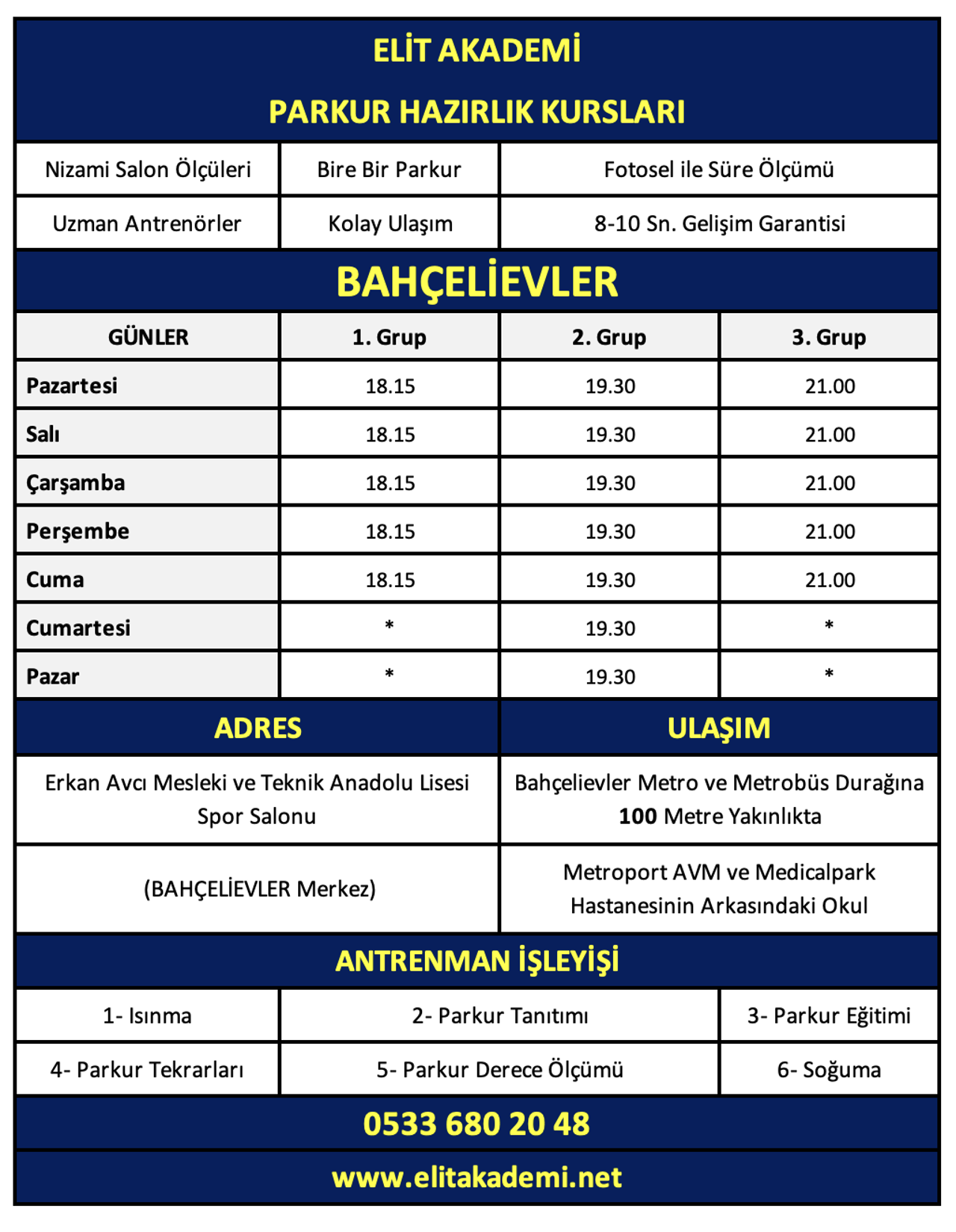 - ANTRENMANLARIMIZ: Parkur Salonları, Ormanda Kros Koşuları ile Tam Profesyonel Bir Sistemde İlerlemektedir.
